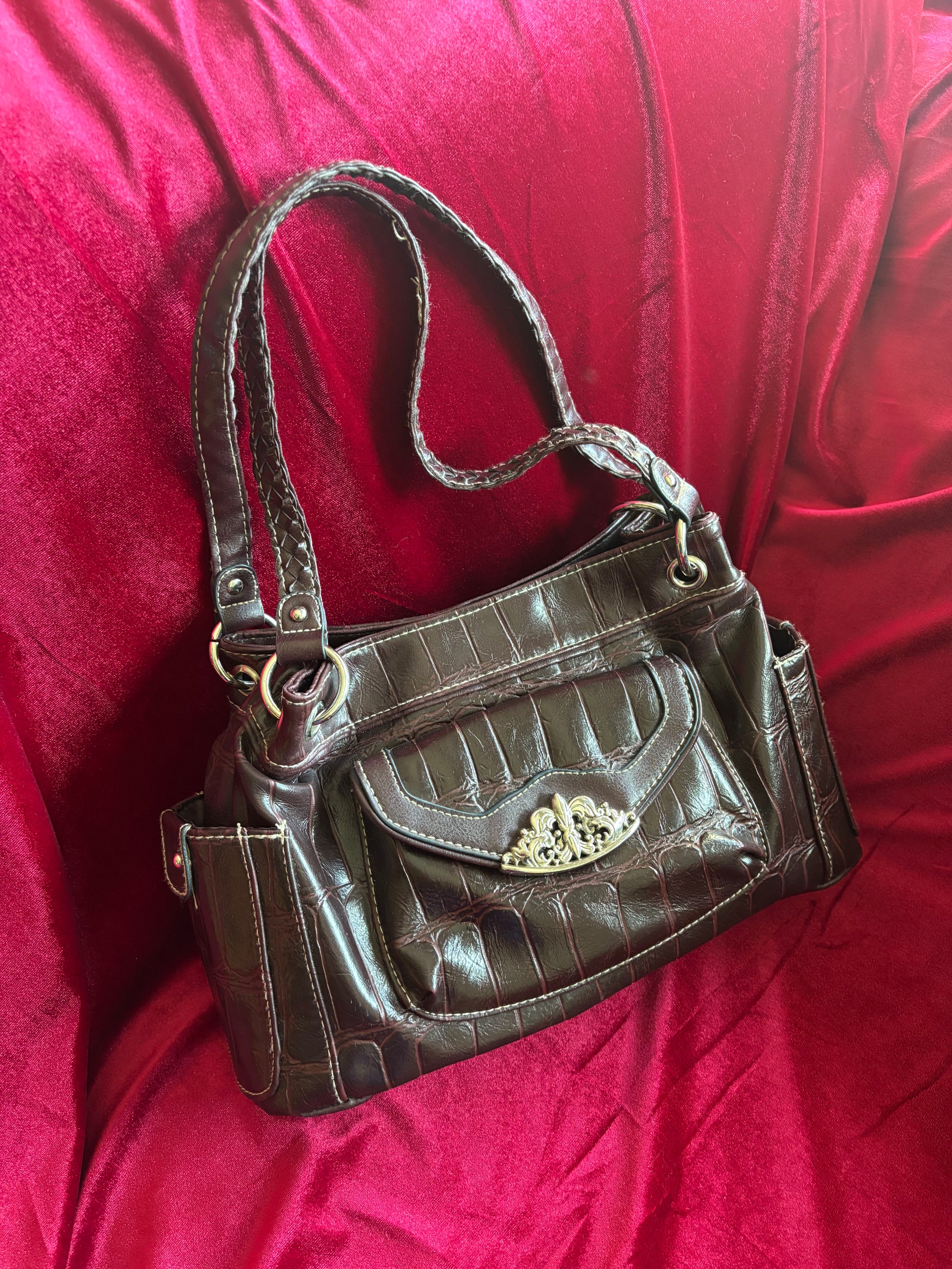 Bueno Brown Faux Croc Bag