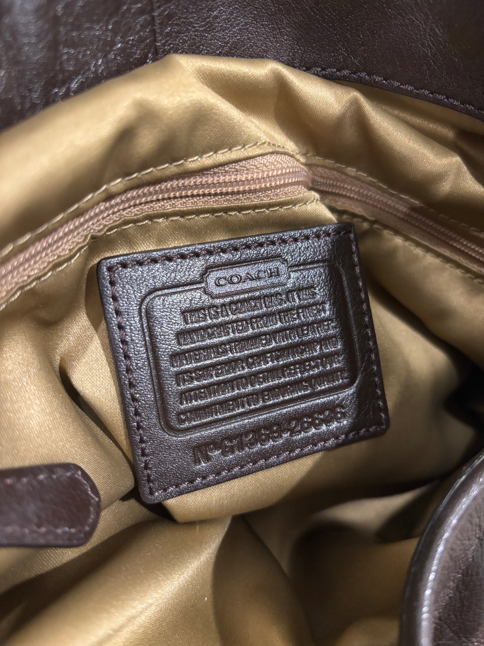 Features: 3 spacious compartments, gold-tone hardware, inner compartments, 2 hang tags