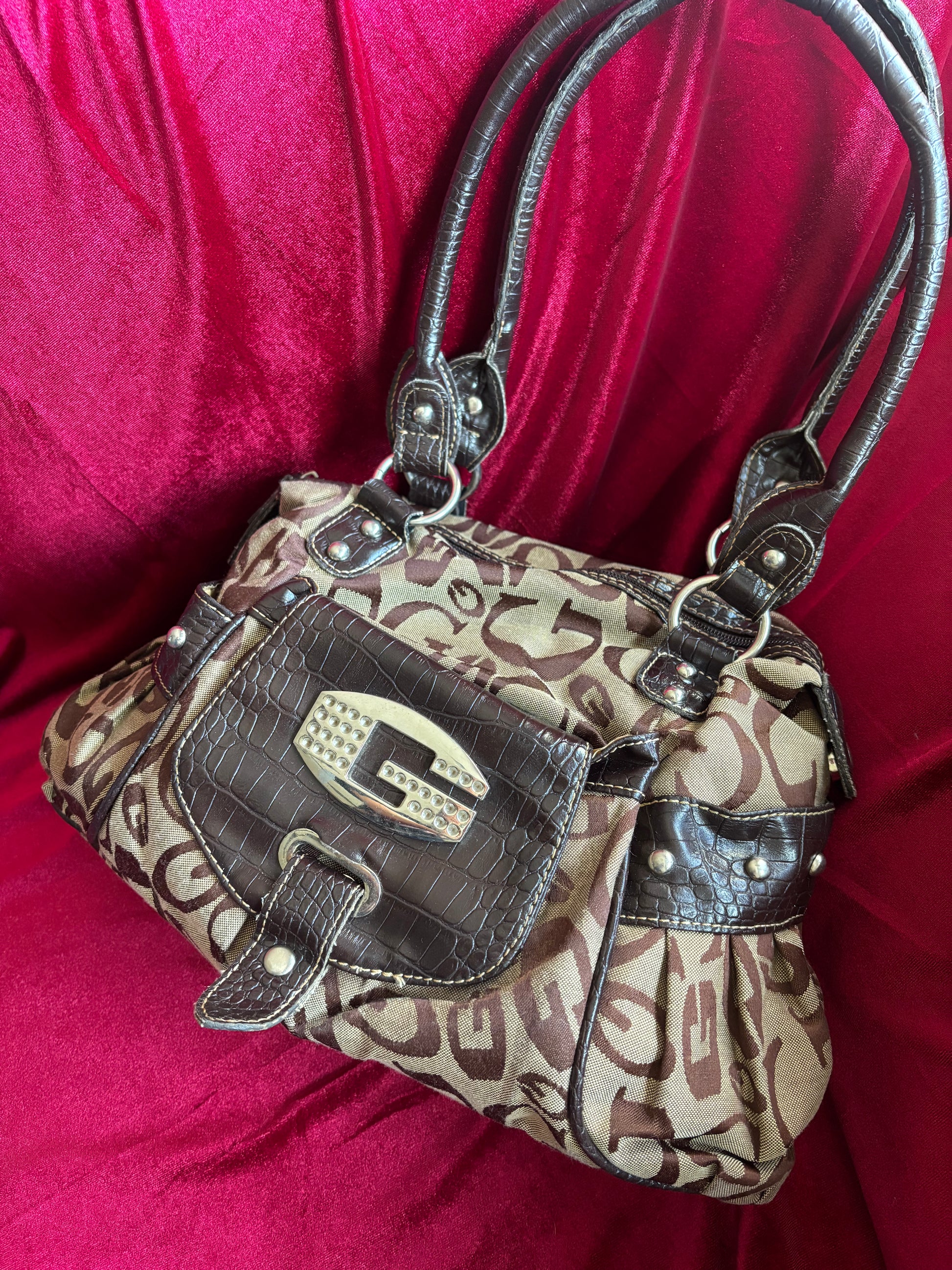 For the Guess bag lover, this Y2K bag features many pockets and storage space perfect for any function. She also has the iconic all-over "G" monogram print and the "G" logo hardware.